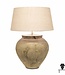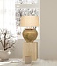 La base est en céramique et a une couleur beige. Le diamètre est de 50 cm et la hauteur de 47 cm. La hauteur totale, abat-jour compris, est de 90 cm. L'abat-jour est en lin et peut être rallongé de 5 à 7 cm. De plus, il possède une rotule avec laquelle il peut être tourné dans toutes les directions.