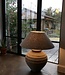 Illuminée elle est belle! Mais même lorsque cette lampe en céramique n'est pas allumée, elle attire toute l'attention. Elle est fabriquée en céramique et présente un design brut et naturel. La couleur est jaune beige-ocre et la finition est enjouée grâce aux lignes horizontales appliquées sur toute la surface.