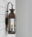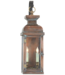 Cette lanterne murale a une finition particulièrement raffinée: Elle se compose d'une longue tige qui maintient le haut et le bas de la lanterne. La forme de la lanterne elle-même est très astucieusement conçue et finie en cuivre et en verre. À l'intérieur, il offre de la place pour 2 lampes à bougie qui peuvent être placées sur une tige. La porte avant s'ouvre en faisant glisser un levier vers le haut.