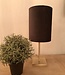 Het ontwerp van deze mooie design tafellamp is eenvoudig maar straalt pure klasse uit. De stang en voet zijn goudkleurig en heeft een E27 lampvoet waarin u een LED lamp kan plaatsen die werkt op 220V. Best is om gebruik te maken van een heel warme LED lamp (2200 Kelvin) zodat de warme kleur nog meer uitkomt. Bovenop de stang wordt een lampenkap geplaatst in fluweel. Deze lampenkap is standaard beschikbaar in zwart. Contacteer ons op [email protected] indien u een andere kleur wenst. De diameter van de lampenkap is 15 cm, de hoogte 20 cm.