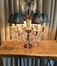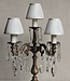 Wat denkt u van een tafellamp in pure barok stijl? De mooi, gevormde armen die artisanaal gemaakt zijn in brons zijn de basis om mooie kaarslampen te plaatsen. Deze worden telkens beschut door een textiel lampenkapje dat mooi het licht doorlaat. Tussen de armen in en aan de bovenkant van deze barok kandelaar zijn kristallen aangebracht. Het effect hiervan is een mooie, sfeervolle lichtreflectie.
